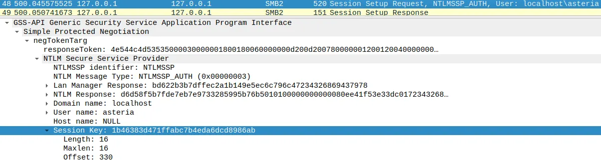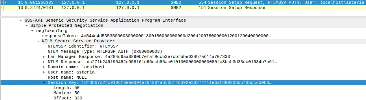 [그림 1] SMB NTLM 인증에 포함된 정상 SMB 세션 키 (16 바이트)