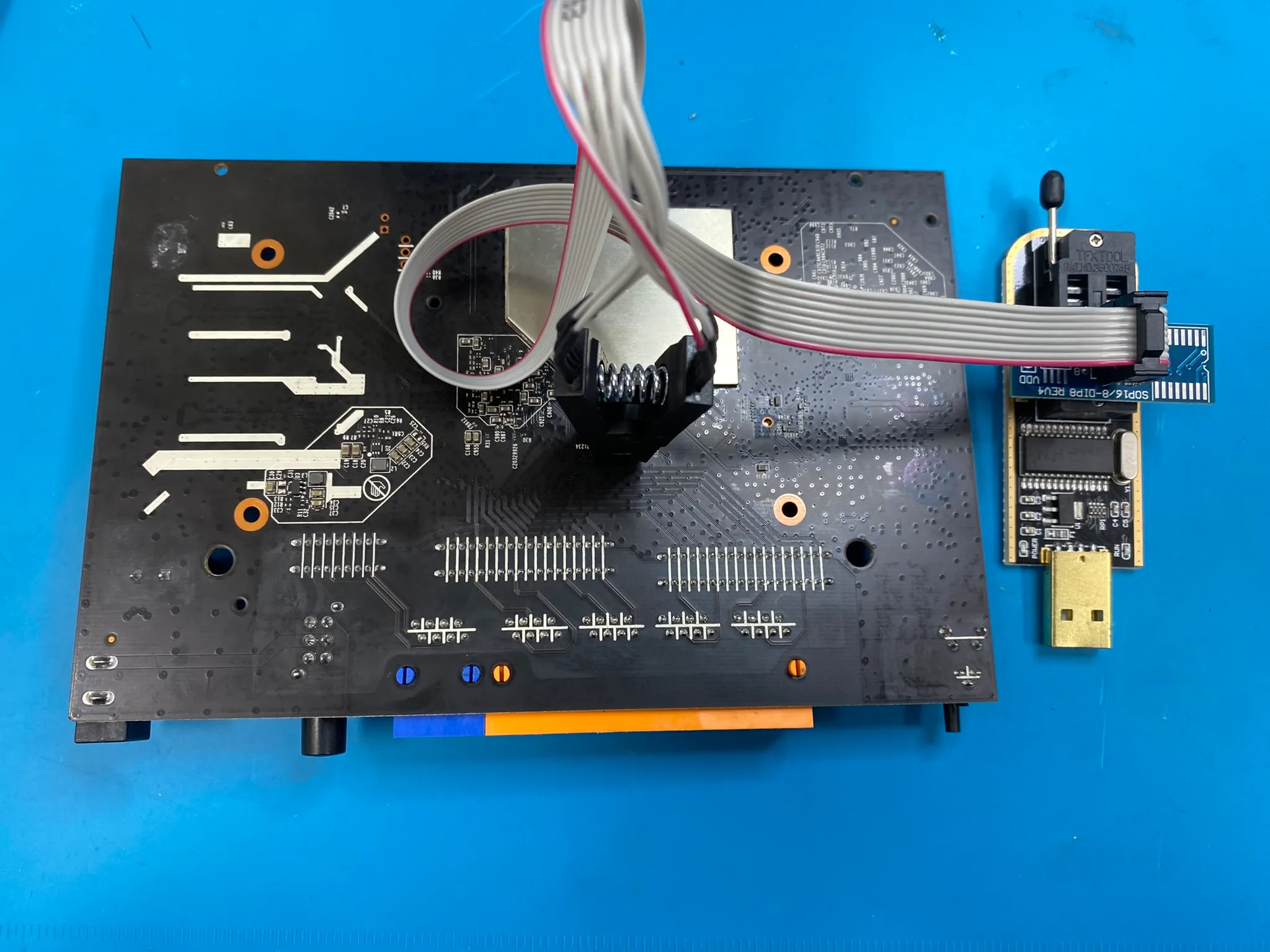 SOP8 규격을 갖는 데이터 칩의 경우 데이터 시트를 참고해 다리 부분에 집게 점퍼선이나 클램프를 걸고 라즈베리파이 등의 장비와 연결하여 SPI 통신으로 데이터 추출이 가능합니다.