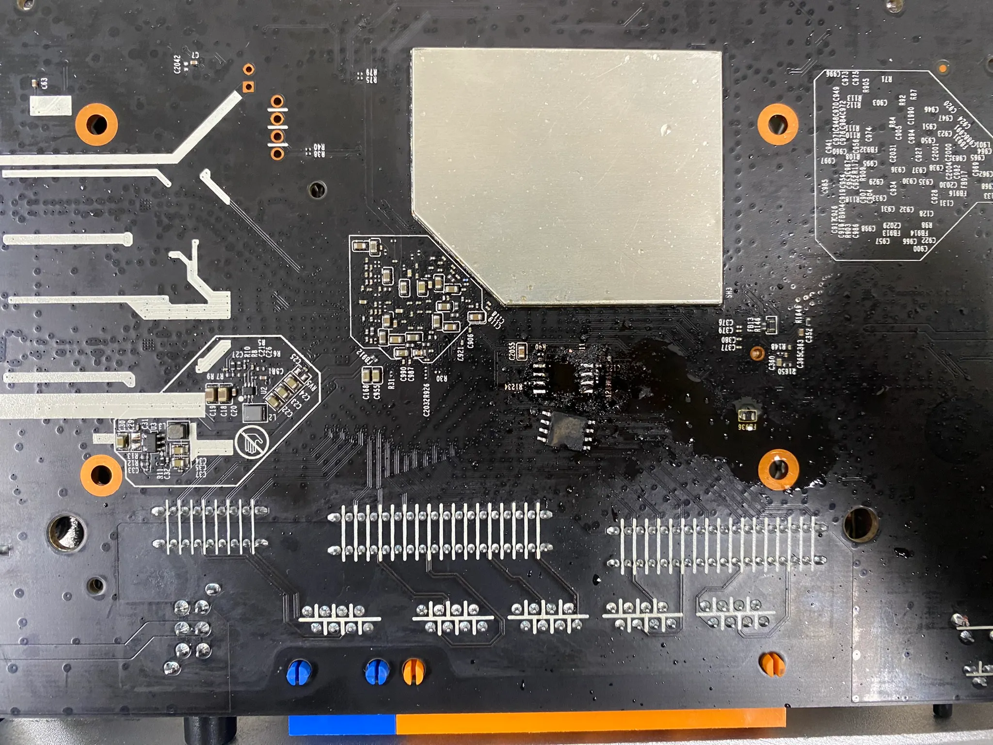 더욱 효과적이고 빠르게 납을 녹여 칩을 떼어내기 위해 칩 주위의 납에 플럭스를 첨가하여 작업하는 경우도 있습니다. 가열되어 녹은 납이 공기와 직접 닿으면 산화하면서 굳어버려 Chip-Off 작업에 불편함이 발생하거나, 작업 중 불순물이 혼합될 수도 있습니다. 이러한 점을 방지하기 위해 플럭스를 칩 주위에 도포해 줍니다.