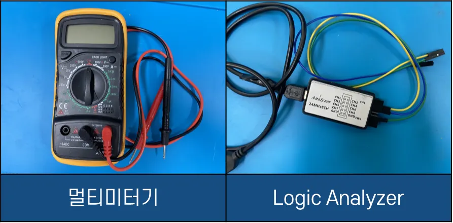 디버깅 핀으로 추정되는 부분이 있다면 멀티미터기로 어떤 용도로 사용되는 핀인지 확인할 수 있지만 수동으로 핀을 일일이 식별해야 한다는 단점이 있습니다. 이를 자동으로 식별해 주는 장비가 Logic Analyzer입니다.