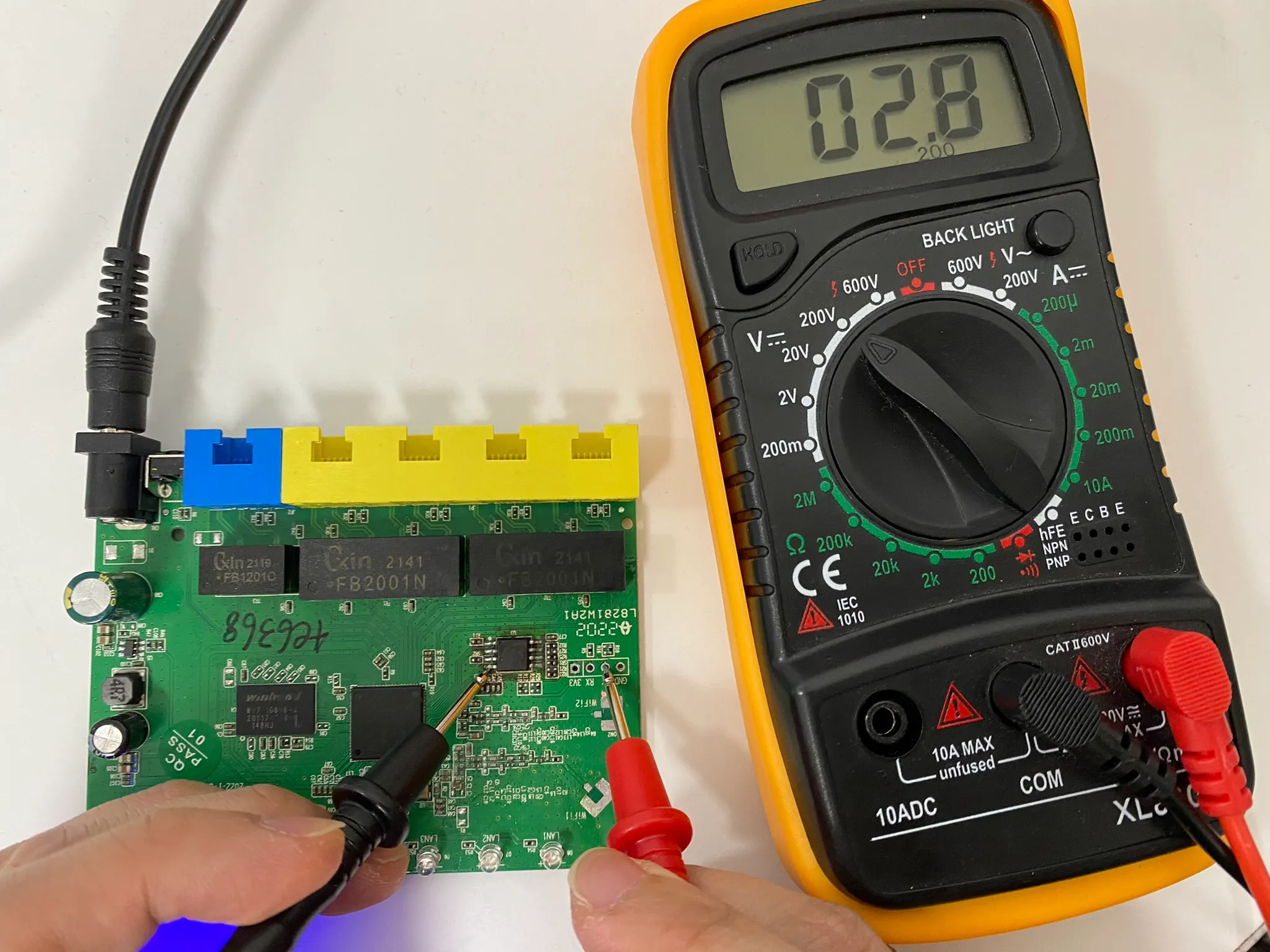 완성 제품을 출시할 때 디버깅 포트의 핀 정보를 제거하는 경우가 존재하는데 이를 식별할 때 멀티미터기를 사용할 수 있습니다.